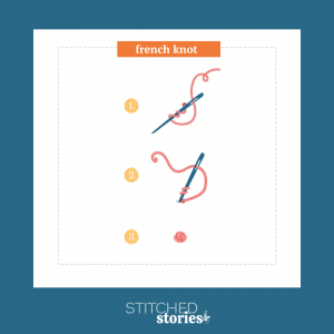 The French Knot is an embroidery stitch that’s created by wrapping floss around your needle one or more times. Once the floss is wrapped, you’ll insert the needle back into the fabric at almost the same spot where it originally came up.